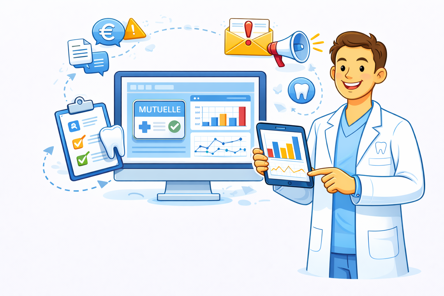 Automatisation intelligente: nos robots synchronise automatiquement les données avec les mutuelles et récupère les prises en charge, ce qui diminue les erreurs humaines et accélère les traitements